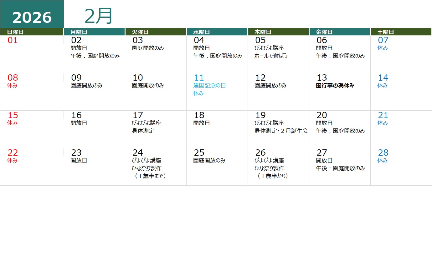 ※2月11日(水)・・・建国記念の日のためお休みです。