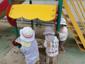 秋風が気持ちよく、過ごしやすい気候が続いています。秋晴れの中、子どもたちは伸び伸びと戸外活動を楽しんでいます。