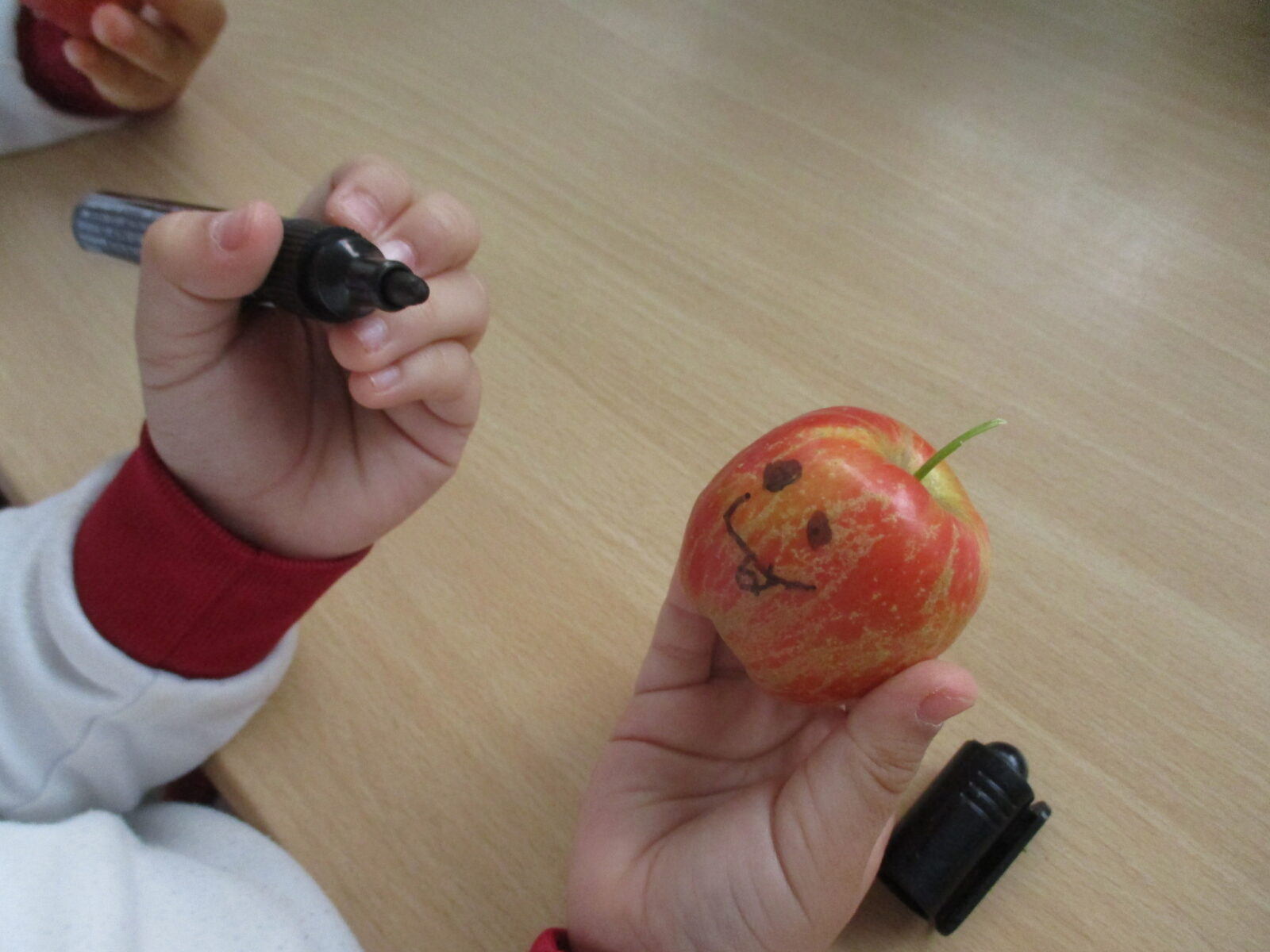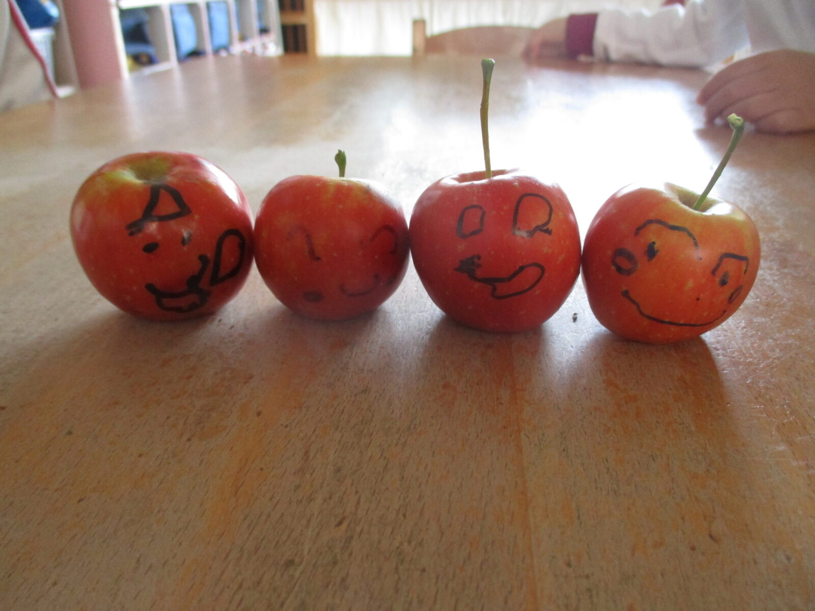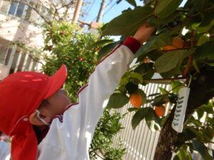 2025年11月13日 / 最終更新日時 : 2025年11月12日 myoujoukai 明野保育園からのお知らせ 🍎柿とりんごの収穫をしました 園庭にあるりんごと柿の収穫をしました。 「大きくなったね。」「いつの間にか真っ赤になってる!」「甘いにおいがする!」と大きさや色について様々な発見をしていました。 少し高いところにある実も椅子に登り自分たちで収穫することが出来嬉しそうな子どもたち。 収穫した物には可愛く目や口を描いて秋らしい飾りになりました。