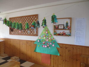 今年は残暑が長く続き、ようやく暑さが落ち着いてきた10月後半には運動会(幼児クラス)、そして11月に入ると遠足やお散歩でどんぐりや落ち葉など秋散策、12月は年長クラスの保育参観、そしてクリスマス会と季節の移り変わりを感じる日々でした。