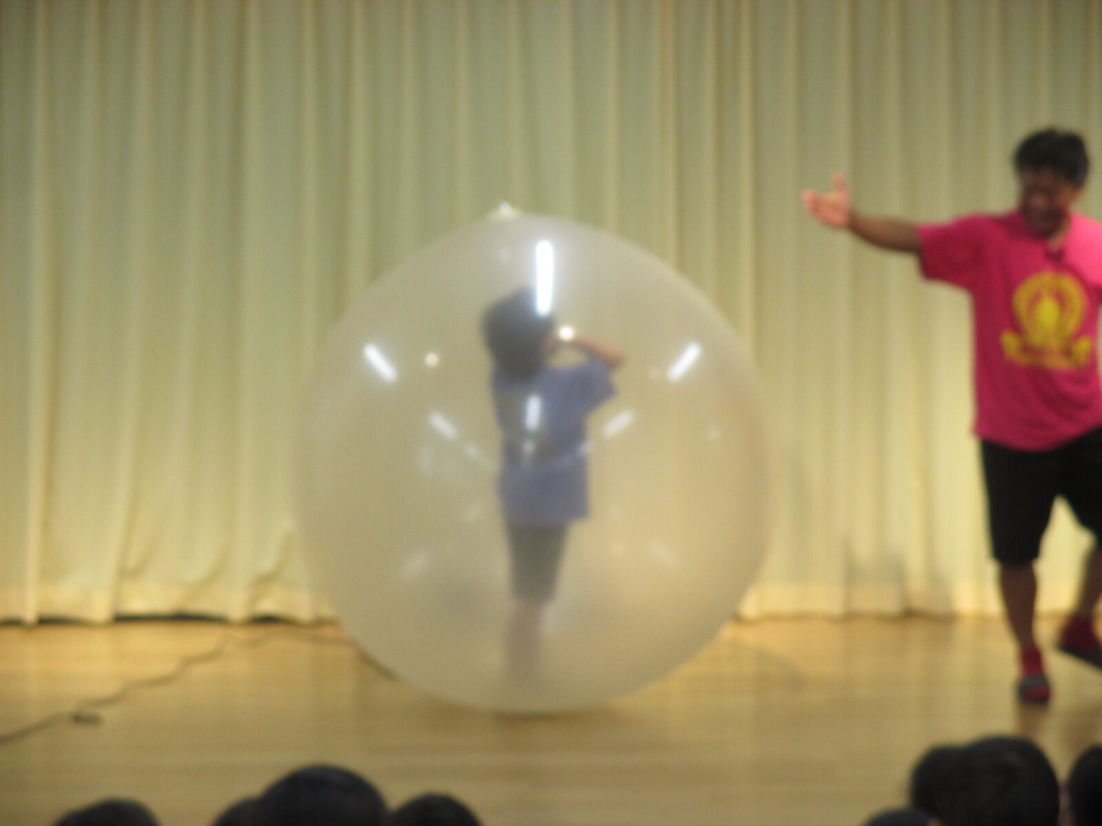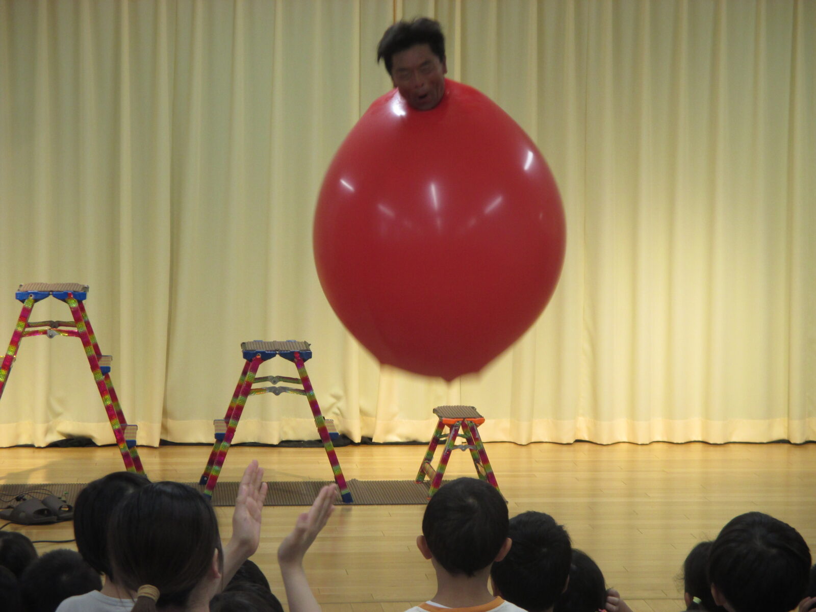 2025年10月28日 / 最終更新日時 : 2025年10月28日 myoujoukai まつがねだより 保育園に風船太郎さんが来てくれました! 先日、保育園に風船太郎さんが来てくれました! 巨大風船に入り、高さの違う台を風船に入ったままジャンプして登ったり、年長クラス(とら組)の子どもが立候補して巨大風船に入ったりしました。 父母の会のご協力の元、子どもたちが喜ぶ行事を開催できました。 ありがとうございました。